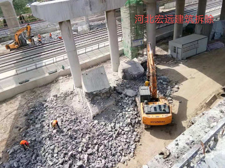 1、爆破拆除:使用風鎬在支撐梁上鉆孔,設置炸藥爆破后對砼塊進行人工及機械打鑿清理,優(yōu)點是施工速度快、清理簡單、造價較低;缺點是辦理相關手續(xù)困難、對周邊影響較大,具有一定的局限性。